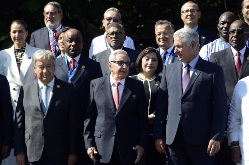 HAVANA, Sept. 16, 2023 (UNI/Xinhua) -- UN Secretary-General Antonio Guterres, Cuban revolutionary leader Raul Castro and Cuban President Miguel Diaz-Canel (L-R) pose for a group photo at the Summit of the Group of 77 (G77) and China in Havana, Cuba, Sept. 15, 2023. The Summit of the G77 and China kicked off at the Palace of Conventions in Havana on Friday.(Photo courtesy: UNI/Xinhua)