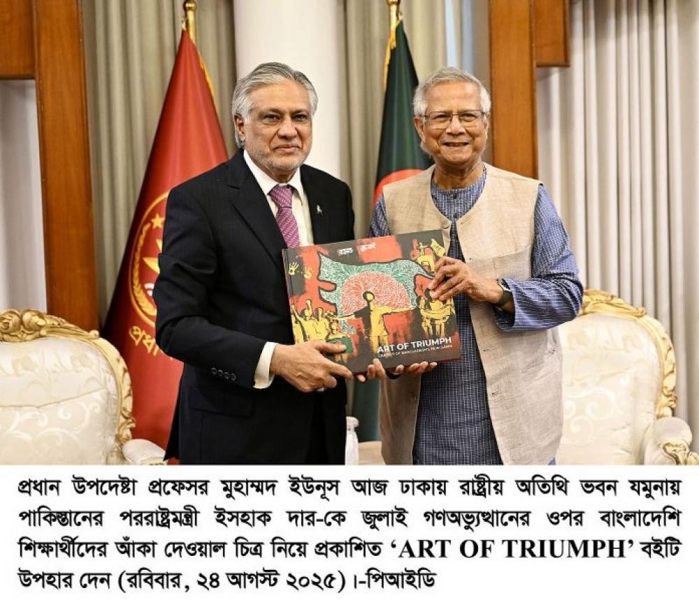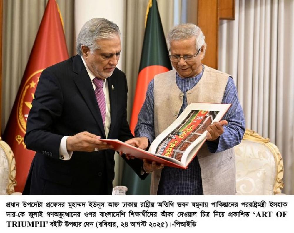 Pakistani Foreign Minister Ishaq Dar meets Bangladesh interim government chief Muhammad Yunus during his visit to the South Asian country on Sunday (August 24, 2025). Photo: PID Bangladesh