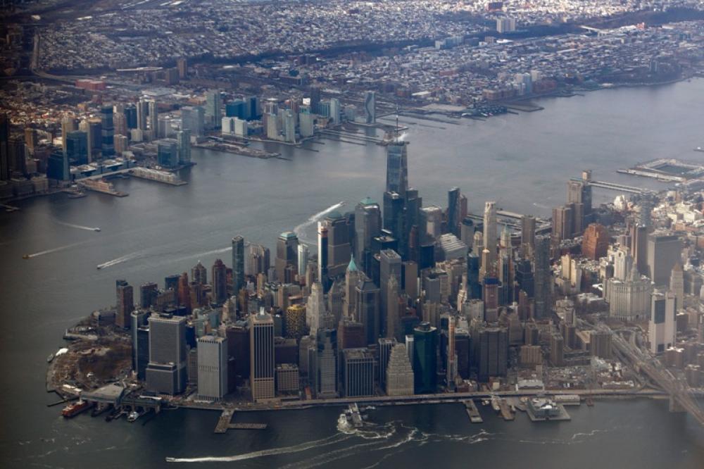 NEW YORK, March 19, 2019 (Xinhua) -- Photo taken on March 18, 2019 shows an aerial view of Downtown Manhattan in New York City, the United States.