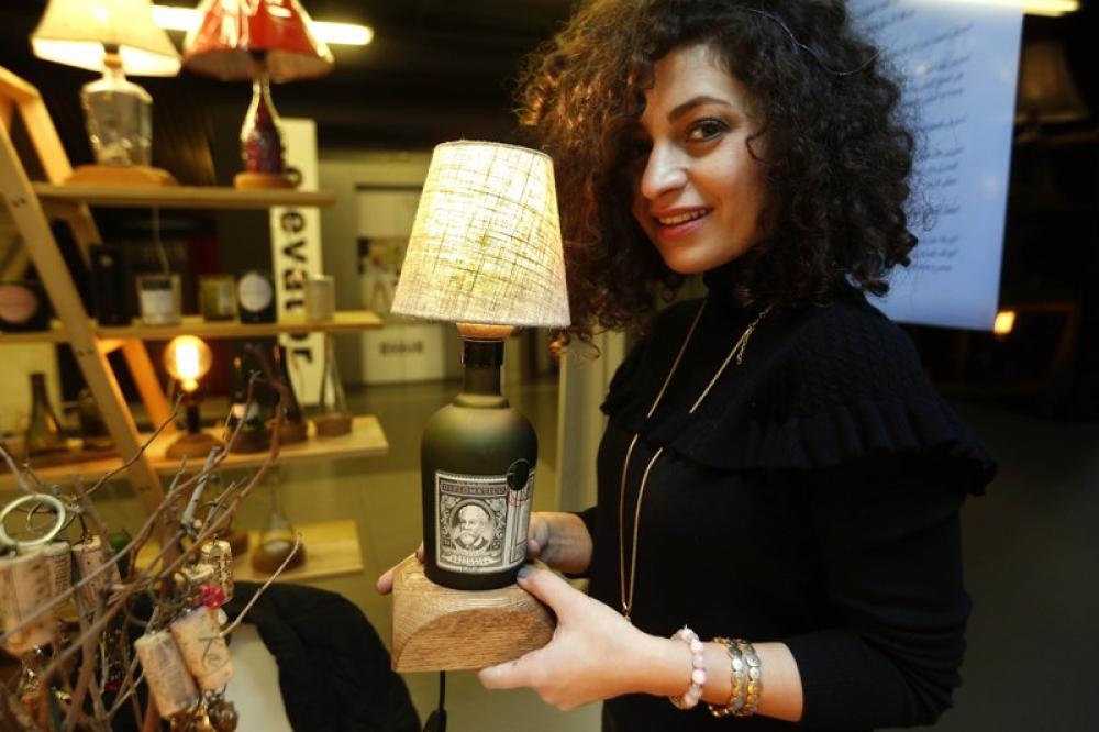 BEIRUT, March 19, 2019 (Xinhua) -- A woman shows a lamp made of recycled materials during an exhibition on the occasion of Global Recycling Day in Beirut, Lebanon, on March 18, 2019.