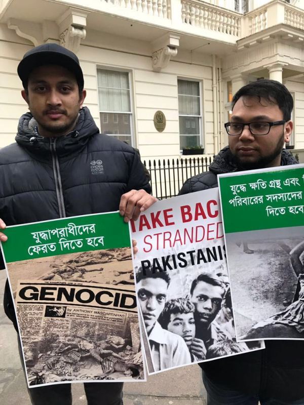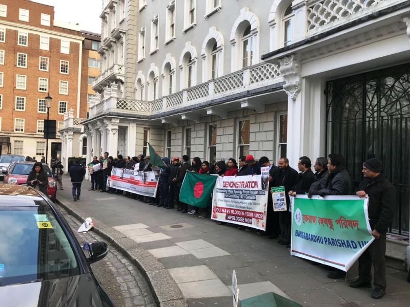 London: Demanding an apology for committing 1971 genocide, several Bangladeshi nationals on Friday staged a protest outside the Pakistan High Commission in London.