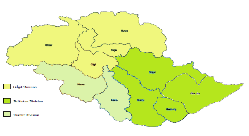 Gilgit-Baltistan is administered as three divisions and ten districts. Image: Balti sahib/Wikipedia