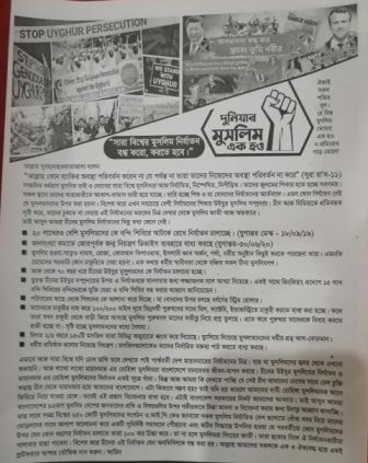 Protests against the treatment meted to Uyghurs in China was also held in Rajshahi region of the country.
