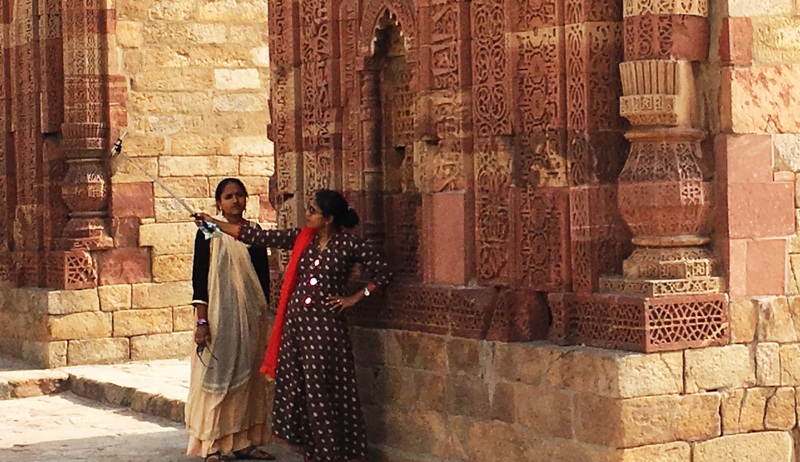 Image: An Indian woman in capital New Delhi taking a selfie in the complex of Kutub Minar