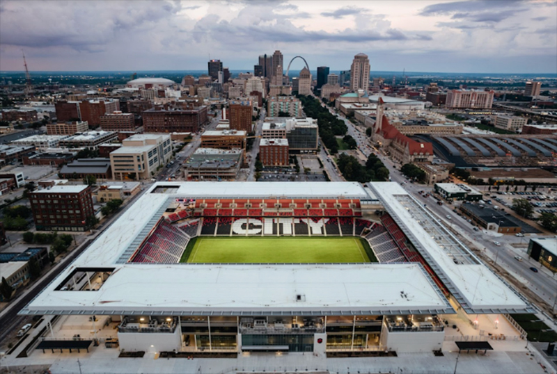 CityPark, home of St. Louis City SC, has a seating capacity of 22,500 people and sits on the edge of downtown St. Louis, MO. PC: Kashaun Smith of St. Louis City SC